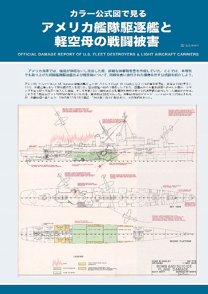 カラー公式図で見る アメリカ艦隊駆逐艦と軽空母の戦闘被害