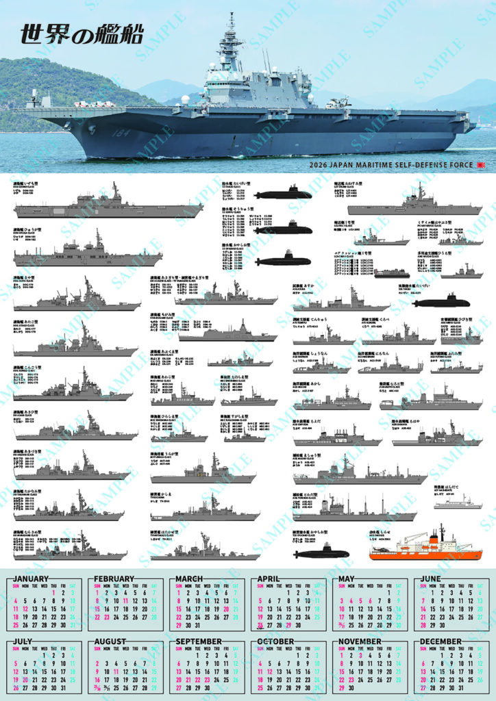 「世界の艦船」より、海上自衛隊現役艦艇を一覧にしたポスター型カレンダーを